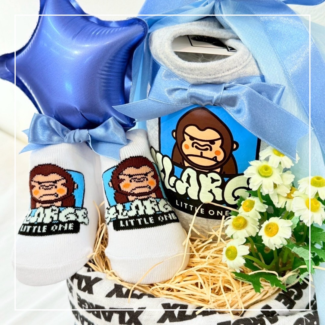 【XLARGE】ファニーゴリラ おむつケーキ 2段 グレー ホワイト